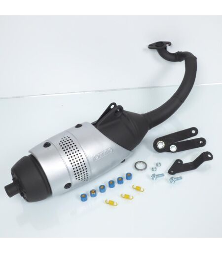 Pot d'échappement neuf type origine de marque Leovince Touring homologué améliorant les performances d'origine. Le corps d'expansion du pot est fabriqué en acier 10/10 avec une peinture électrostatique qui résiste aux hautes températures et aux agents atmosphériques. L'intérieur du silencieux à cloisons permet d'éviter à l'huile du moteur de boucher le pot pour assurer une longue durée dans le temps. Vendu avec: - Un jeu de six galets 15mm x 12mm x 4,7 grammes. - Un jeu de trois ressorts d'embrayage dur (jaune). Livré conforme aux photos. ...