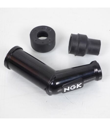 Capuchon antiparasite NGK VB05F neuf coloris noir. Caractéristiques : - Type de connexion : Sans olive (douille) - Résistance : 5 Kohm - Coude : 120° Vendu à l'unité. Livré conforme à la photo. ...