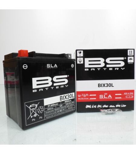 Batterie BS Battery au plomb type SLA neuve sans entretien activée usine vendue prête à l'emploi référence YIX30L type SLA. Caractéristiques: - Longueur: 166mm - Largeur: 126mm - Hauteur: 174mm - Tension: 12V - Capacité: 31.6Ah - CCA: 400A - Bornes + à droite Les batteries BS sont une alternative fiable en vue d’un remplacement. Elles répondent aux normes électriques en vigueur et aux préconisations des constructeurs. Avantages: - Activée usine, pré-chargée, prête à l’emploi. - Cycle de vie supérieur (plus de 3 fois une batterie conventionnelle). - Facilité d’installation (aucun risque de déversement d’acide car aucun remplissage en acide n'est nécessaire). - Haute puissance. - Aucun entretien. - Sans danger (pas de transport d’acide car aucun bidon d'acide n'est fourni avec la batterie). - Montage multi-position (vertical ou horizontal). - Scellée, pas d’émission de gaz et de ...