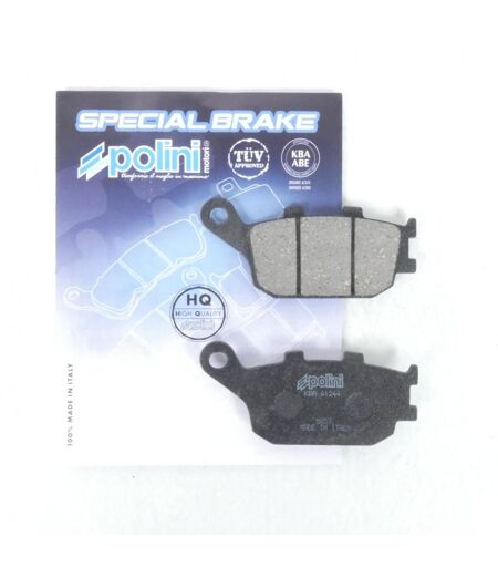 Une paire de plaquette de frein organiques neuves de marque POLINI gamme 'ORIGINAL' référence '174.0072' de coloris noir. Homologuées 'TÜV' et 'KBA / ABE'. La ligne « Original » se distingue par l’usage de matériaux « organiques » traditionnellement utilisés par les constructeurs de motos en monte d'origine. Les plaquettes de frein « Original » assurent le même montage standard que l’origine avec un niveau élevé en matière de sécurité et un rapport qualité/prix avantageux. Dimensions : - Largeur : 86mm. - Hauteur : 40mm. - Épaisseur : 9mm. Vendues par paire. Livrées conformes à la photo. ...