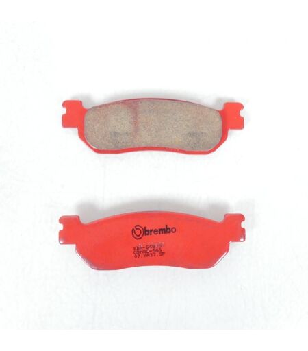 Une paire de plaquette de frein en métal fritté neuves de marque BREMBO référence '07YA37.SP', homologuées TÜV de coloris rouge. Dimensions : - Longueur : 99.6mm. - Hauteur : 31mm. - Épaisseur : 9mm. Vendues par paire. Livrées conformes à la photo. ...