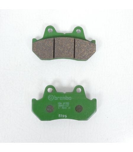 Une paire de plaquette de frein organiques neuves de marque BREMBO référence '07HO10.10', homologuées TÜV, de coloris vert. Dimensions : - Longueur : 89.9mm. - Hauteur : 49mm. - Épaisseur : 11mm. Vendues par paire. Livrées conformes à la photo. ...