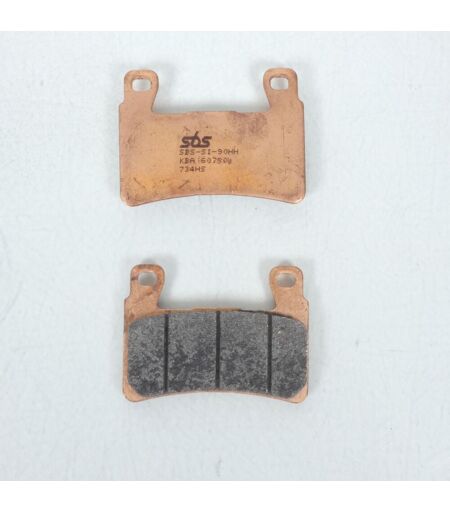 Une paire de plaquette de frein avant en métal fritté neuve de marque SBS référence '734HS'. Associant parfaitement absence de fading, bon feeling de freinage et stabilité thermique, cette garniture a été spécialement développée pour la conduite sportive et pour supporter les fortes charges induites par le poids des grosses cylindrées. La plaquette HS n´abîme pas le disque, sa performance reste stable qu´il fasse sec ou humide et elle ne nécessite pas de rodage thermique. Recommandée pour les récents modèles de motos sportives, GT et custom haute performance équipées d´origine de plaquettes sintérisées. Jeu de plaquettes pour un étrier de frein avant. Attention pour certains véhicules il est nécessaire de commander 2 jeux de plaquettes. Dimensions : - Longueur : 74.5mm. - Largeur : 55.2mm. - Épaisseur : 7.2mm. Vendues par paire pour un étrier de frein. Livrées conformes à la photo. ...