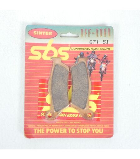 Une paire de plaquette de frein avant et / ou arrière en métal fritté neuve de marque SBS référence '671SI'. Que le terrain soit boueux ou sableux, qu´il fasse soleil ou qu´il pleuve, les garnitures SBS SINTER OFF-ROAD apporteront à votre moto de cross, / Tout-Terrain ou à votre quad la meilleure puissance de freinage possible. Fruits de la toute récente technologie de métal sinterisé appliquée aux plaquettes de freins, les garnitures SBS Sinter Off-Road se caractérisent par la stabilité de leur performance de freinage et leur faible taux d´usure tant sur piste qu´en Tout-Terrain. Les plaquettes SBS SINTER OFF-ROAD montées sur vos étriers, vous assurent des kilomètres et des kilomètres de freinage avant de devoir les changer. Jeu de plaquettes pour un étrier de frein avant ou un étrier arrière en fonction du véhicule d'affectation. Attention pour certains véhicules il est nécessaire de commander 2 paires de plaquettes. ...