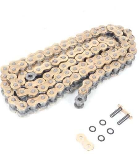 Une chaîne de transmission super-renforcée 108 maillons pas 530, équipée de joints toriques, neuve de marque D.I.D référence '530VX3 X-RING' de coloris or et noir. La série des chaînes VX D.I.D inclus les 428VX, 520VX3, 525VX3, et 530VX3 proposées pour de nombreuses applications street et off-road, de 350cc à 1100cc. Plus longue durée de vie: La série VX offre une durée de vie plus longue comparativement à la série VO, grâce à la technologie brevetée X-Ring. La 520VX3 a une durée de vie supérieure de 32% face à la 520VO et les 525 et 530VX3, 41% de durée de vie plus longue!'. Cette série présente une douille plus rigide améliorant la flexibilité, permettant une conduite plus souple et réactive à l'accélération. Caractéristiques : - Nombre de maillons : 108. - Pas de chaine : 530. - Type d'attache : à riveter. - Axes : creux Vendue à l'unité avec une attache à riveter (river). Livrée ...
