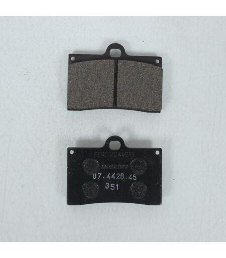 Une paire de plaquette de frein avant organiques neuves de marque BREMBO gamme 'ORIGINE' référence '107442645' remplacée par référence '07BB15.35' de coloris noir. Références origine : - APRILIA : 'AP8113585'. - DUCATI : '61340042A'. - MOTO GUZZY 'GU30654600'. Dimensions : - Longueur : 69.7mm. - Hauteur : 51mm. - Épaisseur : 8.4mm. Les plaquettes de frein ORIGINE BREMBO sont le remplacement de première monte. Elles sont dotées d’un fort coefficient de friction à froid comme à chaud, et sont une référence en termes de longévité, de part une usure modérée. Vendues par paire. Livrées conformes à la photo. ...