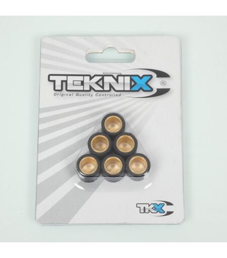 Galets rouleaux de variateur neufs de marque Teknix. Caractéristiques : - Diamètre extérieur : 15mm. - Largeur : 12mm. - Poids : 5.0Grs. Vendus par 6 unités. Livrés conformes à la photo. ...