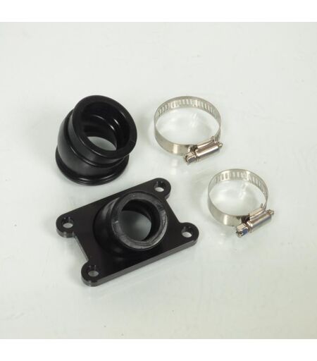 Pipe d'admission racing orientable neuve adaptable de marque Carenzi montage souple vendue avec deux manchons, un modèle pour les carburateurs de diamètre 17,5 à 21mm (PHVA / PHBG), l'autre pour les carburateurs de type “PWK” de diamètre 21 à 28mm. Caractéristiques : - Diamètre emboitement carburateur : 24/32mm - Entre axe trous de fixation vertical : 35mm - Entre axe trous de fixation horizontal : 60mm Vendue nue à l'unité. Livrée conforme à la photo. ...