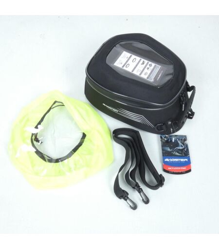 Sacoche souple de réservoir en textile neuve de marque BAGSTER, modèle RAC R LOCK 8L référence 'XSR280', de coloris noir et gris. La gamme RAC’R LINE propose une bagagerie racée, aux lignes aérodynamiques, composée de renforts et de coques thermoformées. La RAC’R LOCK est une sacoche de réservoir petit format. Elle se fixe avec le système LOCK’N START et vous permet de transporter l’essentiel. Caractéristiques : - Volume : 8L. - Format : 18 x 34 x 25cm. - Poids : 950gr. - Fixation LOCK’N START : interface de fixation standard (XAC540) ou déportée non fournis à commander séparément (standard XAC540 référence '311560-1 sur notre site ou déportée XAC740 référence 311561-1 sur notre site). - Poche pour smartphone. - Poche intérieure en mesh. - Poignée de transport anatomique. - Zips (fermetures éclairs) étanches. - Fenêtre transparente tactile. - Housse de pluie avec fenêtre transparente (fournie). ...
