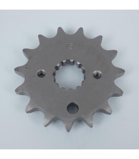Pignon de sortie de boîte 15 dents en acier neuf de marque Sifam. Caractéristiques : - Nombre de dents : 15 dents. - Pas : 530. - Diamètre intérieur cannelures : 21.6mm. - Diamètre extérieur cannelures : 25mm. - Nombre de cannelures : 13. - Fixation par deux trous filetage M6 pas 100 entre axe 42mm. - Épaisseur au niveau de la chaîne : 8.7mm. - Épaisseur au niveau des cannelures : 8.7mm. - Déport : Non. - Trou pour le capteur de vitesse : Oui. Vendu à l'unité. Livré conforme à la photo. ...