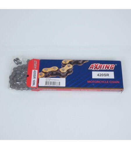 Chaîne de transmission hyper renforcée sans joints toriques neuve, pas 420, 128 maillons, coloris gris. Vendue avec une attache rapide. Livrée conforme à la photo. ...