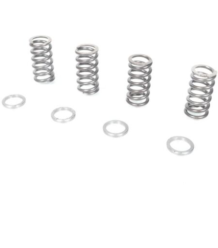 Un jeu de quatre ressorts d'embrayage renforcés adaptables de marque POLINI référence '228.105' en acier de coloris noir. Les ressorts d'embrayage POLINI renforcés peuvent être assemblés soit sur les embrayages d’origine installées sur les moteurs Minarelli AM6, soit sur les embrayages POLINI. Leur caractéristique est d’exercer une charge majorée sur les disques d'embrayage, afin de transmettre des couples très élevés et, dans le même temps, d’éviter les glissements. Le montage des ressorts embrayage POLINI renforcés est indispensable sur les moteurs préparés. ATTENTION : - Pour le groupe thermique POLINI 100cc : remplacer les ressorts d’origine par ceux renforcés et l’entretoise (fournie). - Pour le groupe thermique POLINI 70cc : remplacer les ressorts d’origine par ceux renforcés sans l’entretoise. Dimensions : - Longueur au repos : 30mm. - Diamètre extérieur : 15mm. - Diamètre intérieur : 10.5mm. - ...