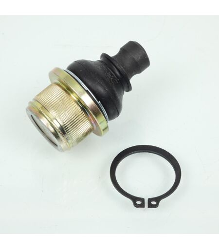 Rotule de triangle de suspension avant neuve de marque ALL BALLS. Dimensions : - Longueur totale de la rotule : 59.7mm. - Diamètre d'emboîtement dans le triangle (partie cannelée): 29mm. - Largeur d'emboîtement dans le triangle (entre la butée d'appui et la rainure de clips) : 13.3mm. - Diamètre extérieur de la butée d'appui : 38mm. - Longueur sous butée d'appui : 19mm. - Diamètre de la tête : 15mm. ATTENTION : convient pour montage sur triangle avant supérieur et / ou inférieur suivant modèle. Vendue à l'unité avec son circlips. Livrée conforme à la photo. ...