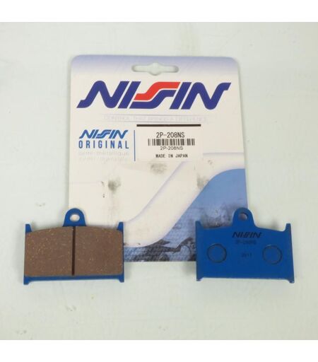 Plaquettes de frein semi métal fritté neuves de marque Nissin référence 2P-208NS type standard. Dimensions : - Longueur : 69.8mm - Hauteur : 55mm - Épaisseur : 8.5mm NISSIN, fabricant de systèmes complets de freinage, bénéficie d'une expérience incomparable non seulement dans le domaine des plaquettes de frein mais également des étriers, disques, maître-cylindre, etc... - Plaquette semi-métallique. - Pour routières et sportives de moyennes et grosses cylindrées. - Excellente longévité, freinage stable & régulier en toutes circonstances. - Résistance élevée au fading et excellent respect des disques. - Pour disques acier inox ou fonte Vendues par paire. Livrées conformes à la photo. ...