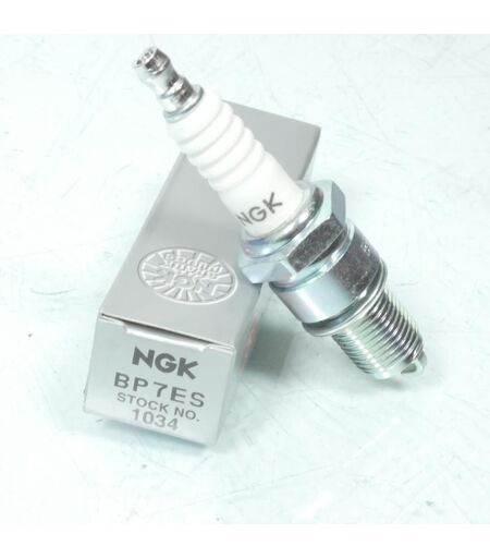 Bougie d'allumage NGK BP7ES neuve. Dimensions: - Culot diamètre: 14mm - Longueur filetée du culot: 19mm - Hexagonal: 21mm Cette bougie est équipée d'une électrode centrale en cuivre et est particulièrement adaptée aux moteurs deux temps. Vendue a l unité. Livrées conforme à la photo. ...