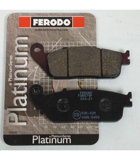 Plaquettes de frein organiques neuves de marque FERODO qualité Platinium Road (P). Dimensions : - Longueur : 102.1mm. - Largeur : 38.9mm. - Épaisseur : 9.6mm. Caractéristiques principales : - Matériau le plus utilisé en premier monte. - Non agressif, respectueux du disque de frein. - Adaptées aux disques en acier et fonte. - Meilleur rapport qualité prix. - Freinage avec des performances identiques dans les conditions humides et sèches. - Support métallique zingué pour réduire la corrosion. Vendues par paire. Livrées conformes à la photo. ...