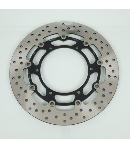 Disque de frein avant flottant rond en acier neuf de marque Ferodo, référence FMD0126RX. Dimensions : - Diamètre extérieur : 300mm. - Diamètre intérieur : 132mm. - Épaisseur : 5mm. - Nombre de trous : 6. - Diamètre des trous de fixation : 8.4mm. - Entre axe des trous de fixation côte à côte : 75mm. - Entre axe des trous de fixation face à face : 150mm. - Déport : aucun. Convient en remplacement des références origine Yamaha 3JP 2581T 00, 3LR 2581T 00, 4SV 2581T 00, 5JJ 2581T 00, 5PX 2581T 00, 4SV 2582T 00, 5PX 2582T 00. Vendu à l'unité. Livré conforme à la photo. ...