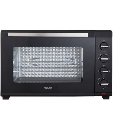 Le mini four Proline PMF60A vous offre une capacité de 60 litres et 4 modes de cuisson pour préparer un repas qui régalera tout le monde ! Design : Son esthétique au coloris noir et ses finitions élégantes en inox lui confèrent un design moderne qui lui permet de s’intégrer facilement dans toutes les cuisines. Puissance et équipement : Puissance : Sa puissance totale de 2000 Watts et son thermostat réglable jusqu’à 230°C vous assurent une cuisson optimale et réussie de toutes vos préparations. Réglez le temps de cuisson à l'aide de la minuterie 120 minutes qui vous garantit une gestion optimale et précise du temps de cuisson. Modes de cuisson : Pour varier les plaisirs, il dispose de 4 modes de cuisson (convection naturelle (voûte+sole), Voûte, Sole). - Convection naturelle : pour toutes les cuissons traditionnelles, idéale pour saisir tous vos aliments en conservant leur croustillant. - Voûte : pour dorer et gratiner toutes vos préparations à la perfection. - Sole : ce mode de cuisson convient pour réussir toutes vos pâtisseries et tartes aux fruits par exemple. Confort : Pour facilité son utilisation, ce four compact mécanique est doté de 3 manettes : un thermostat, un minuteur et un sélecteur de mode de cuisson. Praticité : - Le four est composé d'une porte double vitre - Compact, il s'intègre facilement dans votre cuisine. Accessoires : Le four posable est livré avec : - Un plateau lèchefrite - Une plaque de cuisson - Un tournebroche - Une poignée Dimensions : H44,2 x L63,5 x P39,7 cm ...