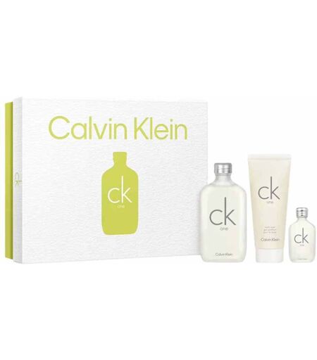 Calvin Klein Ck One - Coffret 100ml eau de toilette + 100ml gel purifiant pour le corps + 15ml eau de toiletteDescription : L'Eau de Toilette ck one de Calvin Klein s'adresse aussi bien aux femmes qu'aux hommes qui sont en accord avec eux-mêmes et avec les autres. Naturel et décontracté, le parfum s'utilise sans retenue. C'est une seule et unique senteur qu'elle partage avec lui, qu'il partage avec elle. Naturellement pur, simple et moderne avec une sensualité aérienne. Un accord de thé vert traverse la fragrance depuis la note de tête en passant par la note de cœur et jusqu'à la note finale contribuant ainsi à la signature de ck one. Notes Olfactives : Notes de tête : BergamoteNotes de coeur : Thé Vert, JasminNotes de fond : Musc ...