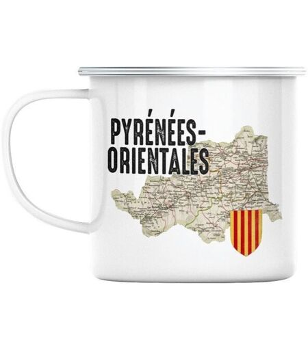 Mug En Métal Emaillé Pyrénées Orientales 66 Département Perpignan Carte Ancienne