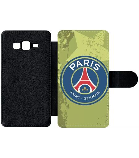 Etui A Rabat - Blason Club Fc Paris Saint Germain - Compatible Avec Samsung Galaxy Grand Prime - Simili-Cuir - Bord Noir