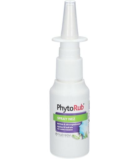 Nez bouché ? Difficultés à respirer ? Lorsque la respiration est perturbée, il faut une solution pour nettoyer et décongestionner les voies nasales. Pour vous aider à surmonter ces désagréments, la recherche des Laboratoires Nutreov a mis au point PhytoRub® Spray Nez, une solution saline enrichie en actifs naturels.IndicationsPhytoRub® Spray Nez est recommandé pour les personnes présentant des gênes respiratoires localisées au niveau du nezConseils d'utilisationAdultes et enfants dès 3 ans : 1 à 3 pulvérisations dans chaque narine. À renouveler dans la journée si nécessaire.Précautions d'emploiBien reboucher le flacon après chaque utilisation. Après la première utilisation, le produit doit être utilisé dans les 3 mois. Ne pas utiliser après la date indiquée sur l’étui. Ne pas avaler. Ne pas utiliser en cas d’hypersensibilité connue à l’un de ingrédients. Aucune interaction connue avec les traitements homéopathiques. Ne pas utiliser si l’étui est endommagé. Tenir à l’écart de toute source de chaleur et hors de la portée des enfants.CompositionSolution saline, extrait d’aloe vera, camphre, extraits de propolis et d’eucalyptus.ConditionnementSpray de 30 ml ...