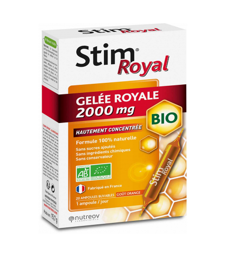 Parapharmacie > Bio & Médecines naturelles > Bien-être et minceur bio > Compléments alimentaires bio Nutreov Stim Royal Gelée Royale Bio 2000 mg x 20 - Compléments alimentaires bio - Pharmacie en ligne LaSante.net