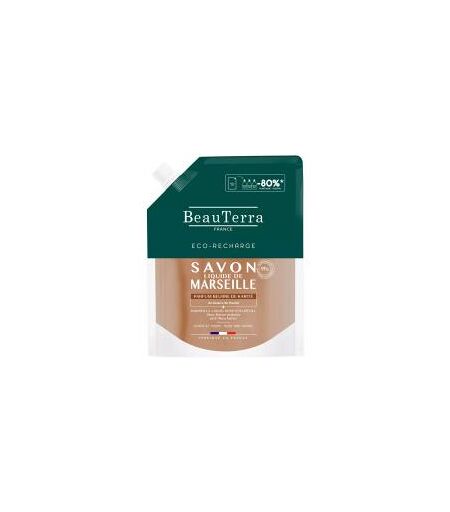 BeauTerra Savon de Marseille Liquide Parfum Beurre de Karité Éco-Recharge 900 ml - Doypack 900 ml