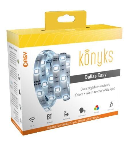Ruban led connecté Konyks Dallas easy - Wi-Fi + bt, Couleurs + Blanc réglable, Longueur 3 mètres, compatible Alexa et Google Home, automatisations