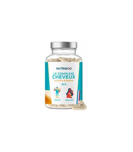 Nutri&Co Complexe Cheveux Kératine & Biotine 60 Gélules - Pot 60 gélules