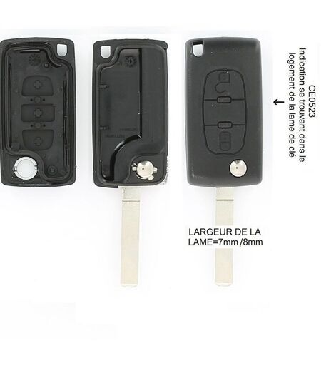Coque de clé adaptable pour Peugeot 107, Peugeot 207, Peugeot 307, Peugeot 308 Référence équivalente : Klemax PSA307C Type de bouton: 7 Lame interchangeable: 3 Information lame interchangeable: Switch: SWC3;Bouton coffre Emplacement pile: Oui Type de pile (non fournie): Lame à dégoupiller sur pivot ...