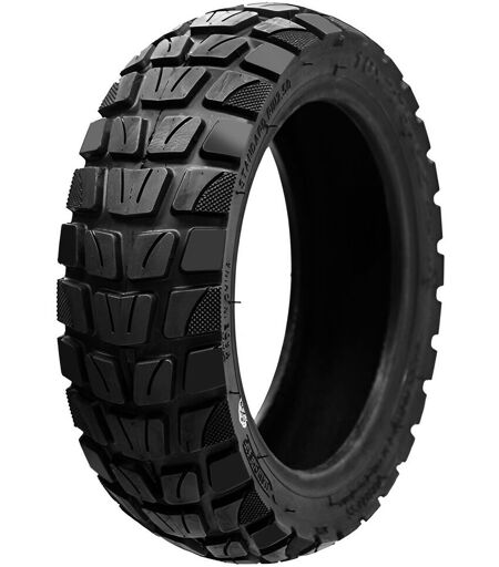 Pneu Off Road 10 pouces pour Trottinette Zero 10X, Kaabo Mantis 10, Dualtron Spider, New, Victor, Victor Luxury, Mobygum Xenon-S, SpeedTrott RX 2000, Wegoboard Blaster, Speedtrott RX 2000, Currus NF10, Hero S10, Laotie ES10P, ES18 et SR10. Profil Tout-Terrain conçu avec des crampons pour une traction exceptionnelle sur des chemins accidentés et boueux. Garantit une parfaite adhérence et stabilité accrue, même sur surfaces irrégulières et glissantes. Amortit efficacement les chocs et vibrations. ...