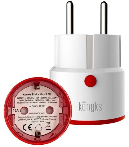 Prise connectée Konyks Priska Max 3 eu - WiFi + bt, Fonctions avancées V3, 16A, Compteur de consommation, Compatible Alexa et Google Home & Tuya