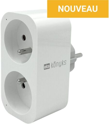 KONYKS Priska Duo fr prise double Wi-Fi + bt, contrôle on/off à distance, suivi de la consommation des 2 appareils simultanément, compatible Smartlife et