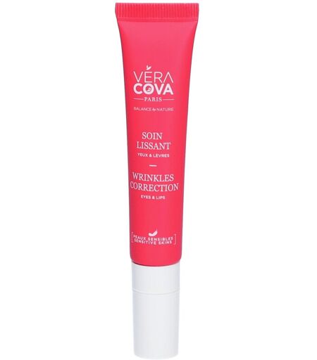 L’efficacité de ce soin anti-rides réside dans la synergie de ses composants : complexe d’ingrédients naturels REJUVERA+® (Algue Boréale, Grenade, Edelweiss), peptides biodisponibles brevetés et d’extraits de Wakamé, Iris, fleur de Cresson. Retrouvez l’expertise VERACOVA avec une formule efficace sans effets irritants ni photo-sensibilisants pour prendre soin de ces zones sensibles.La formule exclusive du Soin Lissant Yeux & Lèvres associée à son embout applicateur en céramique agit efficacement sur les rides installées et d’expression.IndicationSoin anti-rides pour yeux et lèvresApplicationAppliquer matin et soir le soin directement à l’aide de l’embout.Pour la zone regard : en partant du coin interne de la paupière inférieure vers l’extérieur du visage en remontant jusque sur la patte d’oie. Ce soin peut s’appliquer sur la paupière mobile supérieure.Procéder de la même manière pour le contour des lèvres.Tapoter du bout des doigts pour faire pénétrer le soin.L’embout se démonte facilement afin d’être nettoyé et replacé une fois sec.IngrédientsAQUA (WATER), PROPANEDIOL, GLYCERIN, BUTYLENE GLYCOL, DICAPRYLYL CARBONATE, MANNITOL, POLYGLYCERYL-6 DISTEARATE, HYDROXYETHYL ACRYLATE/SODIUM ACRYLOYLDIMETHYL TAURATE COPOLYMER, LEONTOPODIUM ALPINUM CALLUS CULTURE EXTRACT, JOJOBA ESTERS, XANTHAN GUM, 1,2- HEXANEDIOL, CAPRYLYL GLYCOL, ETHYLHEXYLGLYCERIN, CETYL ALCOHOL, POLYGLYCERYL-3 BEESWAX, IRIS FLORENTINA ROOT EXTRACT, PENTYLENE GLYCOL, PEUCEDANUM GRAVEOLENS (DILL) EXTRACT, CARBOMER, POLYSORBATE 60, SORBITAN ISOSTEARATE, UNDARIA PINNATIFIDA EXTRACT, POLYSORBATE 20, CITRIC ACID, LAMINARIA HYPERBOREA EXTRACT, PUNICA GRANATUM FRUIT EXTRACT, ACETYL TETRAPEPTIDE-11, ACETYL TETRAPEPTIDE-9, LEVULINIC ACID, SODIUM BENZOATE, TOCOPHEROL, PALMITOYL TRIPEPTIDE-1, PALMITOYL TETRAPEPTIDE-7 ...