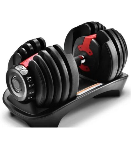 Haltères réglables 24 kg FUTURO Les Haltères réglables 24 kg FUTURO sont votre partenaire de choix pour des séances d'entraînement polyvalentes et de qualité professionnelle. Chaque lot comprend deux haltères, offrant une gamme de poids ajustable jusqu'à 24 kg chacun, adaptée à tous les niveaux de condition physique. Caractéristiques: Qualité professionnelle: Ces haltères sont fabriqués avec des matériaux de haute qualité garantissant durabilité et fiabilité pour une utilisation à long terme. Polyvalence d'utilisation: Grâce à leur système de réglage simple à l'aide d'une molette, ces haltères offrent une polyvalence exceptionnelle, vous permettant d'ajuster rapidement les poids selon vos besoins. Ajustement rapide: En quelques secondes seulement, vous pouvez ajuster les poids grâce à une manipulation facile, ce qui vous permet de passer rapidement d'un exercice à l'autre sans interruption. Conception ergonomique: Conçus pour une prise en main confortable et sécurisée, ces haltères minimisent les risques de blessures et maximisent le confort pendant vos séances d'entraînement. Support inclus: Chaque ensemble d'haltères est accompagné d'un support pratique, offrant une solution de rangement efficace pour garder votre espace d'entraînement organisé et ordonné. Utilisation des haltères ajustables: Ces haltères ajustables sont parfaits pour diversifier vos séances d'entraînement, que ce soit en musculation, en cardio ou en exercices de renforcement musculaire. Quel que soit votre niveau, débutant ou confirmé, les haltères FUTURO vous permettent de personnaliser votre entraînement pour atteindre vos objectifs de fitness. Contenu de l'ensemble: 2 haltères réglables jusqu'à 24 kg chacun. 2 supports de rangement. Investissez dans ces haltères réglables FUTURO pour une expérience d'entraînement efficace, pratique et sécurisée. Leur qualité professionnelle et leur facilité d'utilisation en feront rapidement un élément indispensable de votre routine fitness. ...