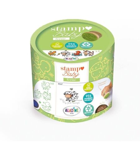 4 TAMPONS ENCREURS ENFANT Ce kit est composé de 4 tampons adorables au dessin très détaillé et d¿un encreur. Vos enfants développeront leur créativité et leur dextérité avec cette boîte de tampons représentant les animaux de la ferme. Boîte de 4 tampons support bois FSC (issu de forêts gérées durablement) + encreur.DÈS 18 MOIS Ces tampons possèdent un gros format rond s'adaptant facilement aux mains des plus petits. Leur support bois facilitent la préhension et la dextérité des plus jeunes tout en limitant les petites mains sales. Les tampons Aladine sont conformes à la réglementation des jouets, et l'encreur inclus respecte les normes enfants.ÉCORESPONSABLES Les Stampo Baby sont labellisés FSC, label permettant d'acheter du bois issu d'une gestion forestière « durable » et qui ne participe pas à la déforestation. De quoi fournir des jouets ludiques à vos enfants tout en participant au respect de la nature.QUALITÉ ET DESIGN ALADINE Les tampons Aladine sont montés sur un support bois avec un embout caoutchouc pour une empreinte de qualité. Fins et très détaillés, tous les dessins de nos tampons sont originaux, craquants et réalisés en France par les illustrateurs de l¿atelier Aladine.L'UNIVERS STAMPO BABY Retrouvez toutes les décisons de nos Stampo Baby. Dessins ludiques et thèmes variés, dont les animaux de ferme, de savane ou domestiques pour des activités manuelles qui feront la joie des filles et des garçons dès 18 mois. Un cadeau ludique et créatif pour toutes les occasions surprises, anniversaires, calendrier de l'avent, Noël. Pour les plus grands, découvrez aussi les tampons Stampo Lovely..La livraison depuis la France est prévue dans 5 jours ouvrés, n'hésitez pas à passer votre commande ...