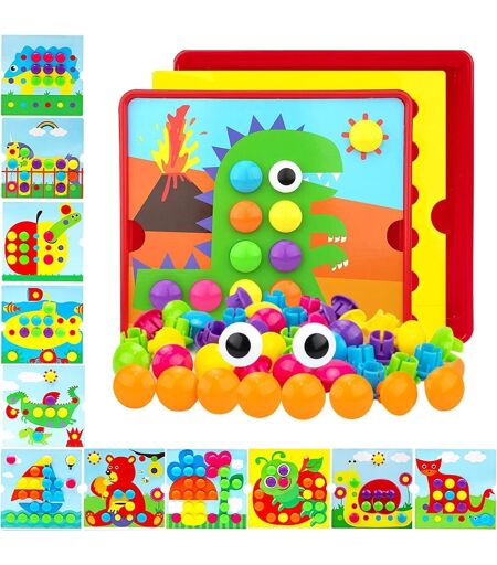 KALANKA-Jeux de Mosaïques Loisir créatif Puzzle Bouton Art Apprentissage Éducatif Mosaïque Pegboard Jouet pour Garçons et Filles Tout-Petits Thanksgiving Cadeaux De Fête d'anniversaire De Noël