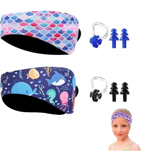 KALANKA-Bandeau de Natation Enfant,2 pcs Bandeau Oreille Piscine Enfant,Bandeau d'oreilles Enfants en Néoprène,Élastique Sport Bandeau avec Bouchon d'oreille Natation,Pince Nez (B, M)