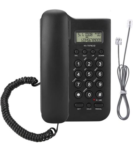 TLP-Téléphone Fixe Filaire, Téléphone Filaire Mural avec Haut-Parleur, Affichage ID de l'Appelant, Mains Libre pour Bureau, Maison.(Noir)