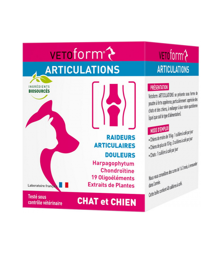 Parapharmacie > Vétérinaire > Bien-être animal > Compléments alimentaires animaux Vetoform Articulation Chat et Chien 100 g - Compléments alimentaires animaux - Pharmacie en ligne LaSante.net