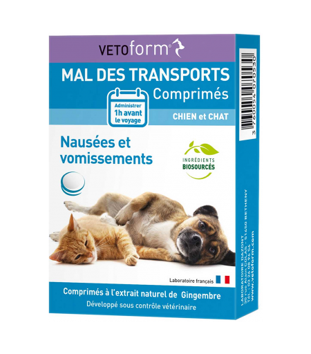 Parapharmacie > Vétérinaire > Bien-être animal > Compléments alimentaires animaux Vetoform Mal Des Transports Chien et Chat Comprimés x 30 - Compléments alimentaires animaux - Pharmacie en ligne LaSante.net