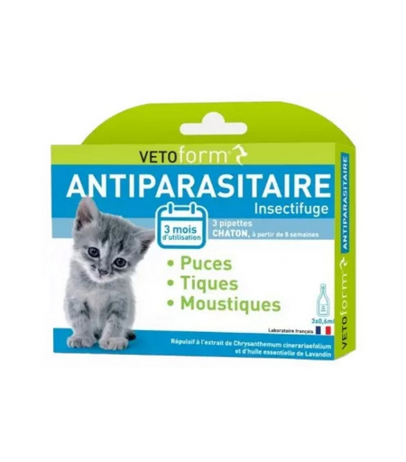 Parapharmacie > Vétérinaire > Anti-parasites > Anti-parasites chat Vetoform Antiparasitaire Chaton 3 Pipettes - Anti-parasites chat - Pharmacie en ligne LaSante.net