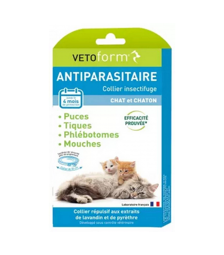 Parapharmacie > Vétérinaire > Anti-parasites > Anti-parasites chat Vetoform Antiparasitaire Collier Insectifuge Chaton et Chat - Anti-parasites chat - Pharmacie en ligne LaSante.net