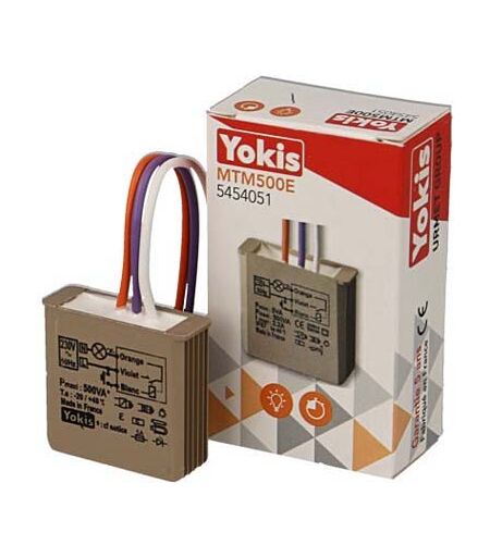 Temporisation intégrée. Compatible avec toute marque d'appareillage. Micromodule 100% étanche. Faites votre choix de YOKIS dans notre offre de Énergie verte & durable Materiel electrique chez bis-electric sur bis-electric, votre fournisseur de matériel électrique sur internet. Nous vous proposons un catalogue d'appareillage électrique pour l'électricité bâtiment et l'électricité industrielle pour vous aider dans la réalisation de vos installations électriques neuves ou en rénovation. Faites le bon choix parmi notre gamme de Économie energie maison > Solution Domotique > Micromodule domotique Maison domotique Courant Faible chez bis-electric - MTM500E Minuterie Yokis France Minuterie Domotique Yokis Caractéristiques techniques : Référence : MTM500E Yokis 5454051Puissance : 5 VA à 500 VA (300 VA si boite étanche)Tension d'emploi : ~230VDimension HxLxl : 37 mm x 35 mm x 12 mmCharges compatibles :Ampoules incandescentes 230VAmpoules Halogènes 230VTBT 12V Transfo. FerromagnétiquesTBT 12V Transfo. ÉlectroniquesAérateurs > à 10VAMoteurs universels ou asynchronesAmpoules économiquesCompatible :Diode pour la centralisation des micromodules sur un fil pilote (D600V)Charge résistive pour ampoules économiques et LED (CHR3W) Raccordement : Ce micromodule Yokis minuterie encastrable 500 W du fabricant français se raccorde facilement à un bouton poussoir et à un système d'éclairage. La minuterie Yokis encastrable est compatible avec n'importe quelle gamme et marque d'appareillage mural. Description : Cette minuterie yokis mtm500e du spécialiste d'appareillage domotique s'équipe sur un bouton poussoir, elle est encastrable et également étanche à 100% pour une utilisation en extérieur. Une fois raccorder à un bouton poussoir cette MTM500E permet d'allumer une lumière tout en déclenchant une temporisation d'éclairage programmable, toute nouvelle action sur le poussoir pendant l'éclairage relance la même durée préréglée. Ce MTM500E Yokis programmable est idéalement utilisé pour les cages d'escalier, couloir de bâtiment et pour les lieux où la lumière peut être temporaire. En cas de coupure de courant cette minuterie conserve les données de réglage, la temporisation est réglable de 2 secondes à 4 heures. Le réglage d'une double temporisation durée longue est possible pour cette minuterie, en effet il est possible d'activer temporairement une durée de 1 heure d'éclairage lorsque l'utilisateur appuie plus de trois secondes sur le bouton poussoir, cette action peut être interrompue à tout moment en appuyant une nouvelle fois sur le poussoir plus de trois secondes. Une fois cette durée longue terminée, la minuterie reprend en compte la durée initiale. Cette minuterie 500 W conçus par Yokis peut parfaitement s'adapter pour un logement ou un bâtiment neuf ou ancien, la possibilité d'encastrer ce micromodule lui permet d'être invisible. La bobine qui compose ce micromodule est protégée en cas d'appuis prolongés. Cette minuterie Yokis MTM500E permet d'augmenter... ...