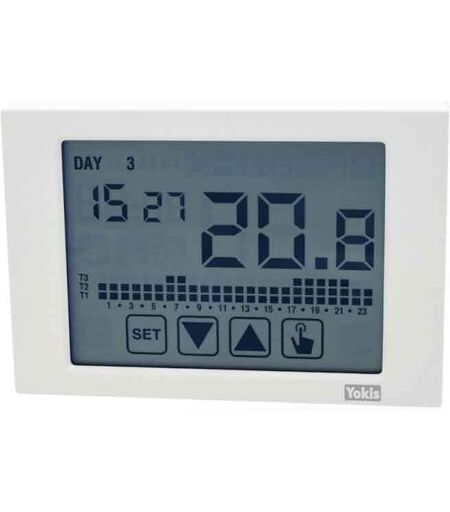 Thermostat connecté Gérer simplement la température dans l’habitat en régulant votre chauffage chaudière Réguler la température du logement en pilotant l’entrée contact de la chaudière n’aura jamais été aussi simple avec YOKIS. Programmez la régulation de votre chaudière simplement grâce au Thermostat connecté YOKIS. Fonctionnant en radio, le thermostat YOKIS vous permet de définir vos plannings et de réguler votre habitat sans travaux. Les + du produit : Thermostat Radio et filaire. Pilotage du relais de votre chaudière pour la régulation température en radio (via un MTR2000ERP(X) ou MTR2000MRP(X)). Un paramétrage simple de votre planning de chauffage depuis l’écran tactile ou depuis votre application YnO (nécessite un YOKIS Hub) Caractéristiques produit : Alimentation 2 piles 1.5V (type AAA) Protection Fixation IP40 / Murale Précision de mesure +/- 0.5°C Résolution de réglage 0.1°C Hysteresis Réglable de 0,1°C à 1°C Modes Hiver / été Programmation 7 jours programmables niveau ...