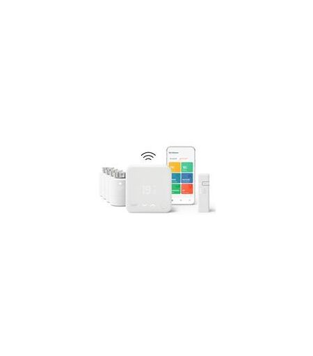 Caracteristiques principales : Connectique : USB. Norme : Ingénierie allemande, production certifiée : ISO 14001 / ISO 9001 / BS OHSAS 18001 / RoHS Emballage recyclable. Caractéristiques de l'écran : Ecran LED 10 x 19 LEDs, 32 x 20 mm / surface tactile. Autonomie maximale : NC. Compatible sol chauffant : Oui. Capteur : température / humidité. Contenu du pack : . Sonde de température sans fil tado° . Récepteur sans fil tado° . Bridge Internet tado° . 3 piles AAA . 2 x 2 vis de montage mural . 2 x 2 chevilles . 2 patins collants . câble à 3 fils . 2 isolateurs . adaptateur secteur UK . alimentation USB . adaptateur secteur EU . câble USB . câble Ethernet . étiquettes de câblage . Guide de bienvenue . Guide d'installation . 6 Guides pour installateurs professionnels . 3 informations réglementaires . 4 x Tête Thermostatique intelligente tado° . 4 x jeu d'adaptateurs. Communication sans fil : Wi-Fi 2.4GHz, 802.11b/g/n. Indice d'étanchéité : Non étanche. Piles fournies : Oui. Caractéristiques complémentaires : tado° Application : Pour iOS 12, Android 6 ou supérieur et téléchargement et mises à jour gratuitsMatériaux et finitions : Plastique PC + ABS / devant : blanc, mat, fenêtre IR rayure noire brillante / derrière gris clairCompatibilité :tado° fonctionne avec les systèmes de chauffage suivants :. Les chaudières à condensation. Chaudières à fioul et à gaz conventionnelles. Compatibilité OS : iOS, Android. Assistant vocal compatible : Assistant Google, Apple Home Kit / Siri, Autre. Compatibilté chauffage : Chaudière, Chauffage individuel, Sol chauffant. Type d'alimentation : Pile, Secteur, Sans fil. Assistant vocal intégré : Assistant Google, Apple Home Kit / Siri, Autre. Fonctionnalités : Commande à Distance, Mesure de la consommation, Mesure de la température, Réglage de la température. Disponibilité des pièces détachées : 5 ans. Points forts : Plus de confort, pas de compromis, faites des économies d'énergie et de coûts. Contrôlez vos pièces de façon indépendante , établissez des programmes individualisés. Chauffez ou refroidissez selon la météo , ne chauffez ou refroidissez jamais une maison vide. Faites votre part pour la planète , respirez plus sainement / Ne payez pas pour chauffer ou rafraîchir tout le quartier. ...