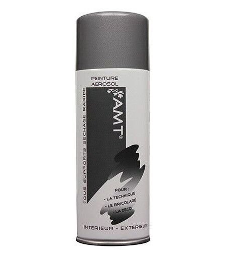 AMT Aérosol Effet métallisé Gris est une peinture acrylique de qualité professionnelle qui s'applique sur de nombreux supports en intrieur et extérieur (carton, toile, bois, terre cuite, métal et certains plastiques...). Couleur représentée par le capuchon du spray. ...