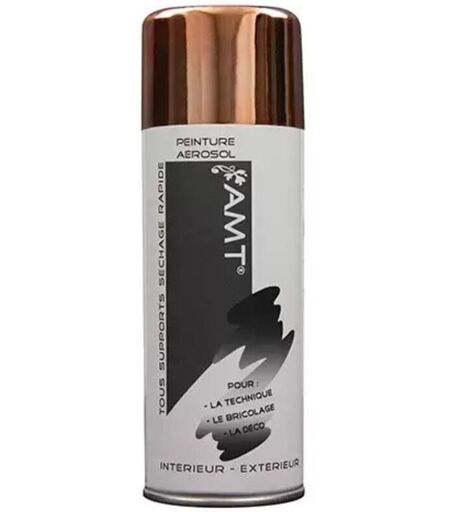 AMT Aérosol Effet chrome Bronze est une peinture acrylique de qualité professionnelle qui s'applique sur de nombreux supports en intrieur et extérieur (carton, toile, bois, terre cuite, métal et certains plastiques...). Couleur représentée par le capuchon du spray. ...