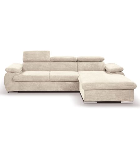 Casa Baoli - Canapé d'angle droit convertible velours côtelé beige avec têtières - kost